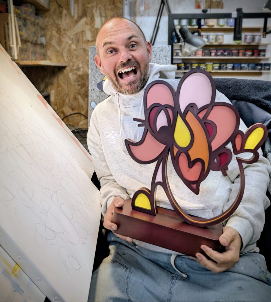 After a few years, a moment of doubt led him to take a step back. It was then that he realized the key to his artistic universe lay in his characters: smiling, energetic figures.